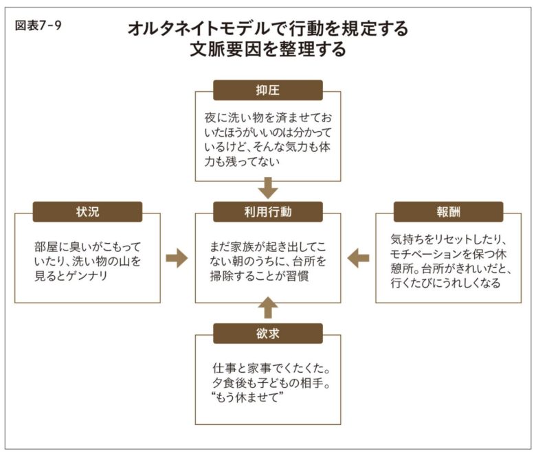 - オルタネイトモデル:行動を規定する文脈要因を4つに分解。