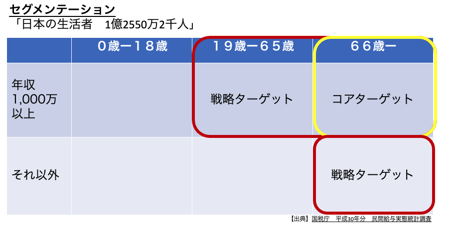 きっとこのセグメンテーションを考えた人は、富裕層に商品やサービスを提供していきたいという背景があったのでしょう。