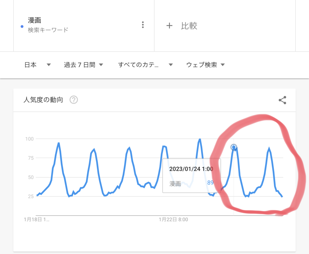 ↓漫画あたりは増えそうなのですが、直近7日間でみても特に増えずですね。