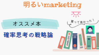 マーケティング書籍レビュー22.マーケティングおすすめ本・マーケターが注力すべきポイントが分かる「確率思考の戦略論」 今回は刀の森岡さんと今西さんの著書「確率思考の戦略論 USJでも実証された数学マーケティングの力」を紹介します。本書はマーケティングの基本をある程度習得し、「マーケティングって結局何すれば良いんだろう・・」と迷いが生じている方にオススメです... 2023.02.05マーケティング書籍レビュー